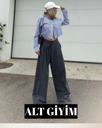 Bağcıklı Palazzo Bol Paça Pantolon - Gri