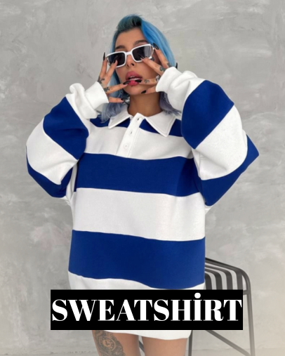 Oversize Yarım Farmuarlı Yakalı Basic SweatShirt - Siyah